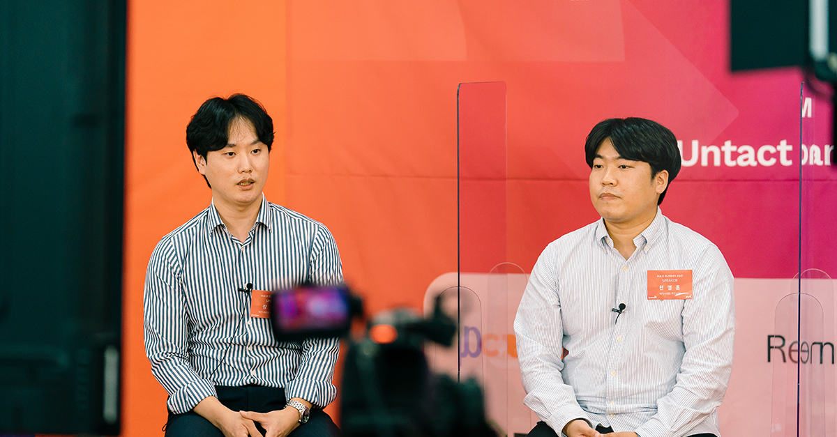 [발표를 진행하고 계시는 장우영 PO님(왼쪽), 천영훈 연구 소장님(오른쪽)]