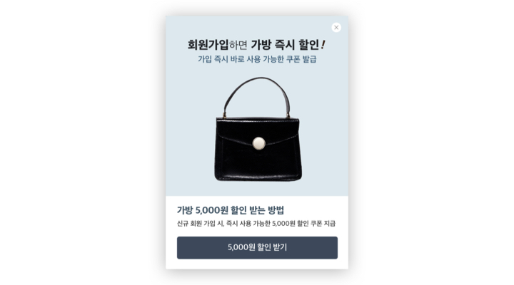 - 캠페인 메시지: 신규 회원 혜택으로 가방을 할인해준다는 메시지 전달